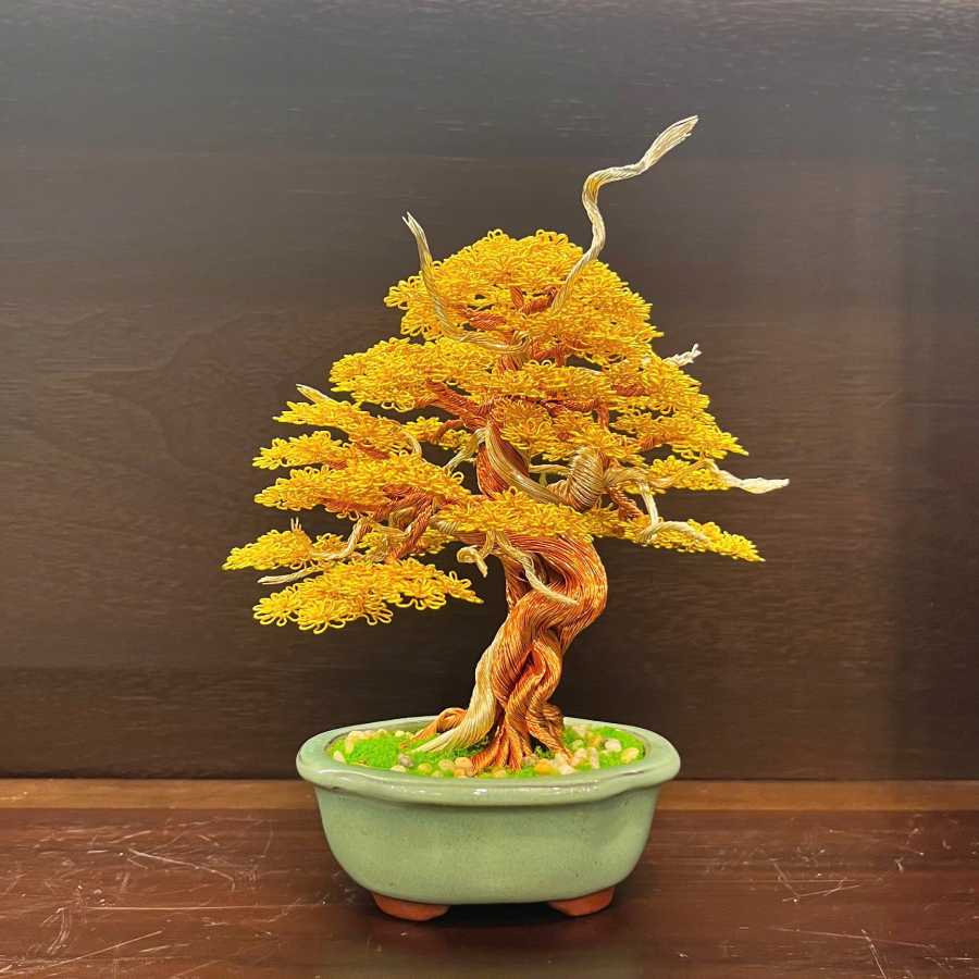 Explore Tinh Tan Global’s Mini Copper Bonsai with Red Leaves – a stunning handcrafted wire bonsai that blends copper artistry with the vibrant beauty of red foliage.